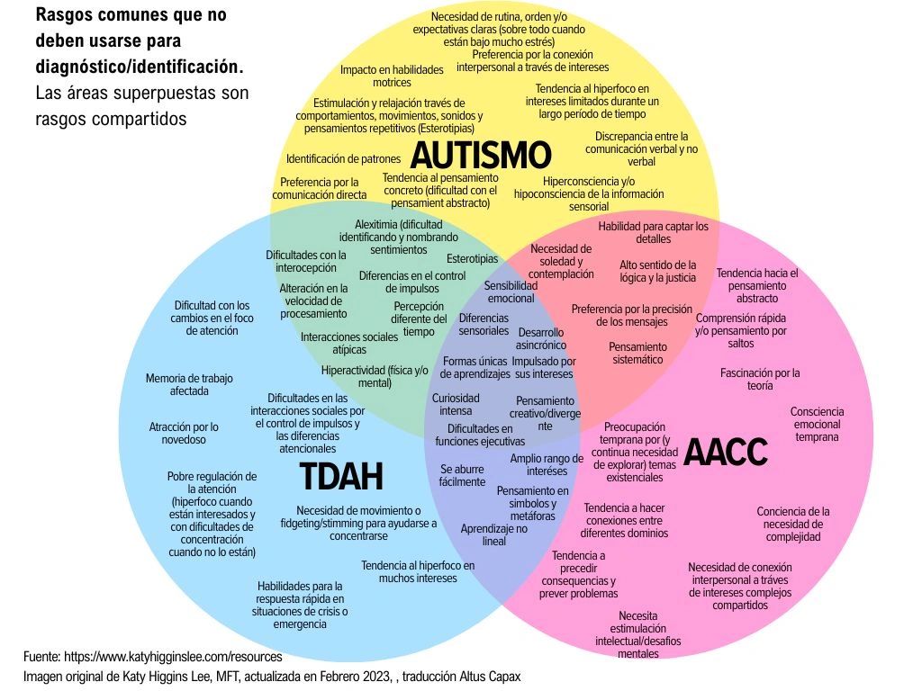 De modo general se "cree" que los niños y niñas de alta capacidad mostrarán un desarrollo muy similar a los poblaciones que no presentan estas características, por lo tanto la sensibilidad emocional genera mucha alarma pensando que es problema emocional, pueden presentar mucho movimiento, sensibilidad a texturas, sonidos, alimentos, sin que necesariamente estemos ante la presencia de un trastorno del neurodesarrollo, no siempre logran congeniar con sus pares de edad y esto se atribuye erróneamente a dificultades para socializar. Cuando estos niños y niñas cuestionan instrucciones, que ellos creen que es injusta, o señalan errores que los maestros puedan cometer acercade información, se les encajona como niños disruptivos o que no toleran la autoridad.